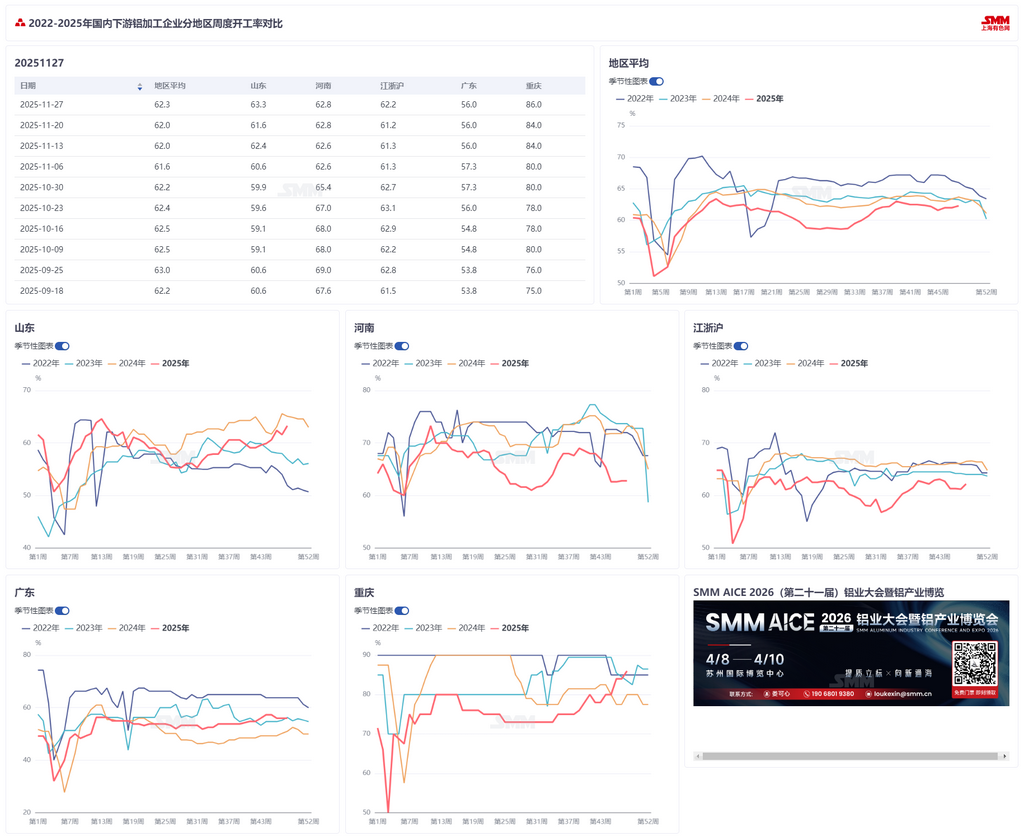 本周铝下游加工材开工率微升至 62.3% 汽车相关领域表现相对稳健【SMM下游周度调研】