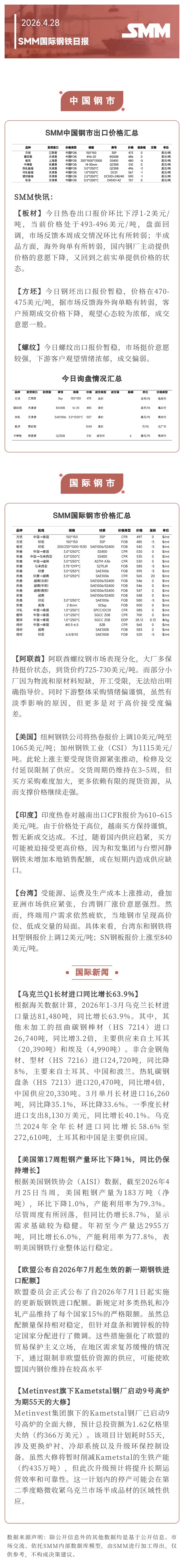 4月28日 SMM国际钢市日报