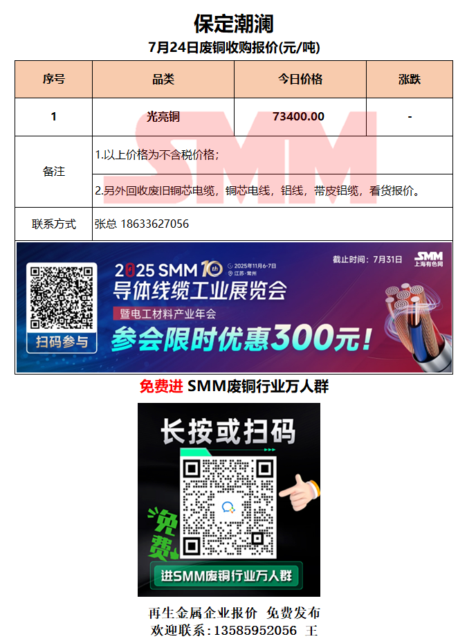 7月24日保定潮澜 废铜采购报价