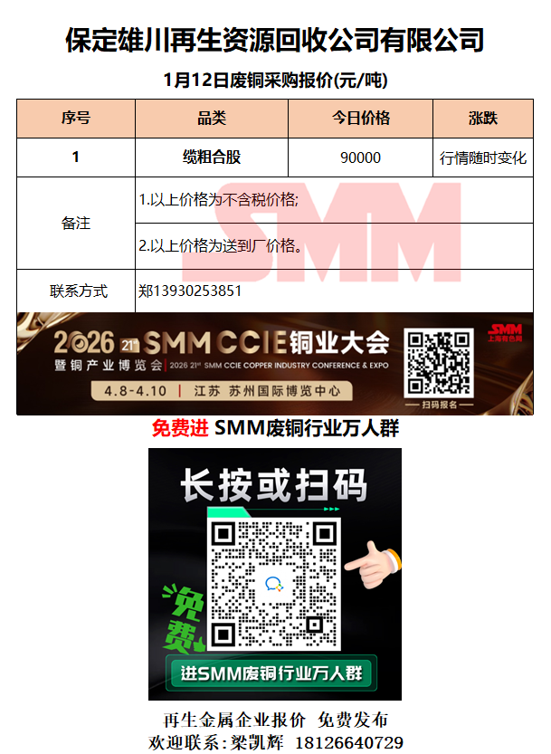 今日保定雄川 废铜采购报价已更新,有货的朋友欢迎联系我们!