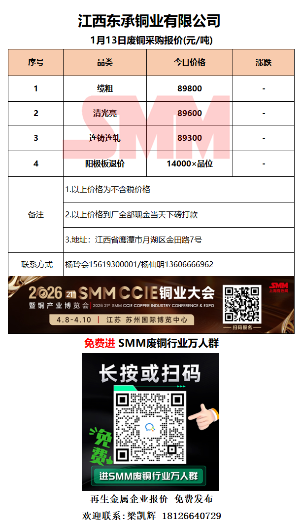 今日江西东承 废铜采购报价已更新,有货的朋友欢迎联系我们!