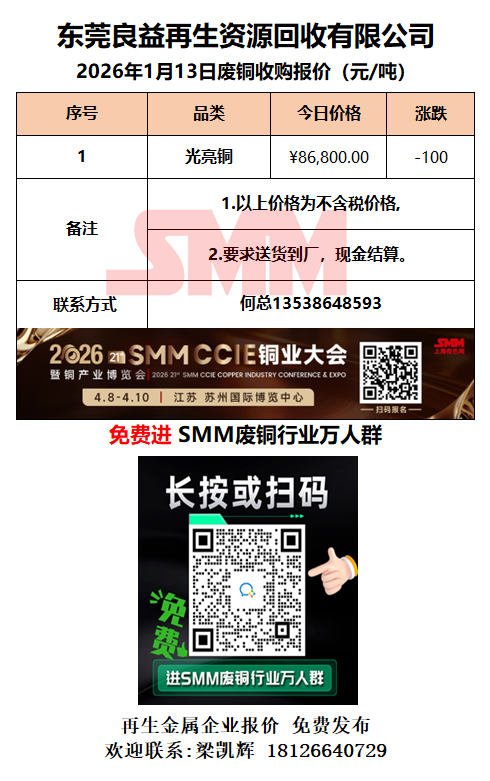 1月13日东莞良益 废铜采购报价