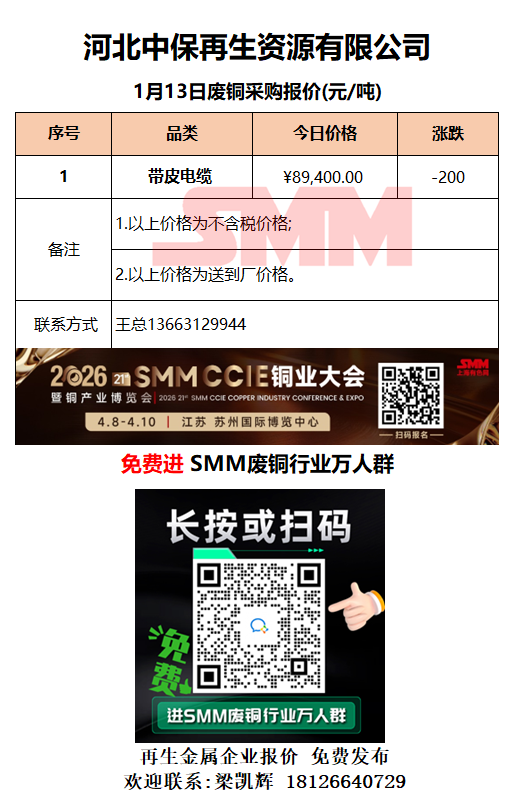 1月13日河北中保 废铜采购报价