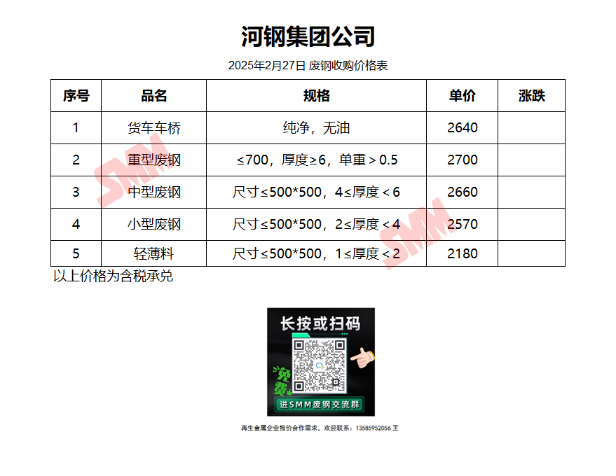 今日河钢集团舞钢公司 废钢收购报价已更新,有货的朋友欢迎联系我们!
