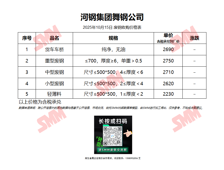 10月15日河钢集团舞钢公司 废钢收购报价